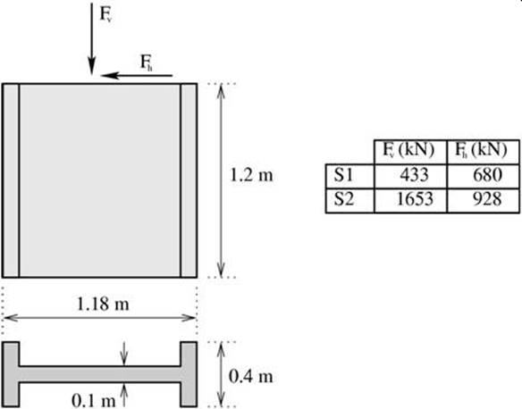 The picture below shows schematically the geometry and loads applied to the two reinforced concrete specimens (S1 and S2) subjected to a hoizontal load Fh and a vertical load Fv.